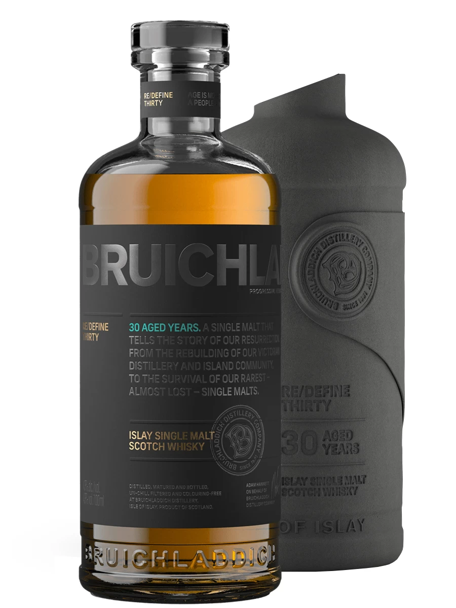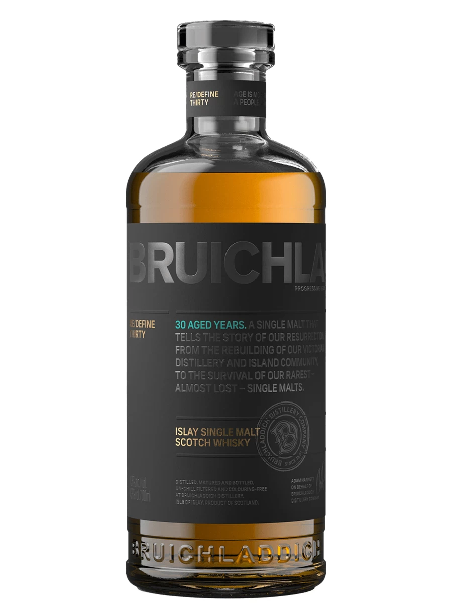 The Bruichladdich Thirty has been meticulously matured in a selection of hand-selected, extraordinarily scarce ex-Bourbon casks. This exclusive and sophisticated single malt Scotch whisky is presented at 43.2% ABV, emphasizing the rich sweetness of toasted oak, honey, and smooth vanilla.