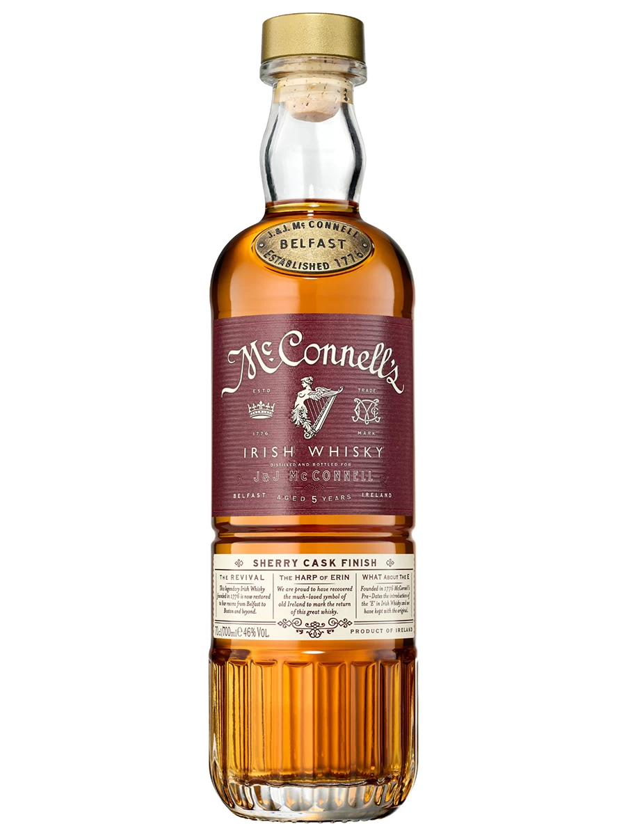 McConnell’s Sherry Cask Finish is aged for 5 long years, matured in 1st fill select Bourbon barrels, then finished in the finest Oloroso Sherry Casks which bring out rich aromas of dried figs, dark chocolate and lingering spice. Bottled at 46% ABV, non-chill filtered.