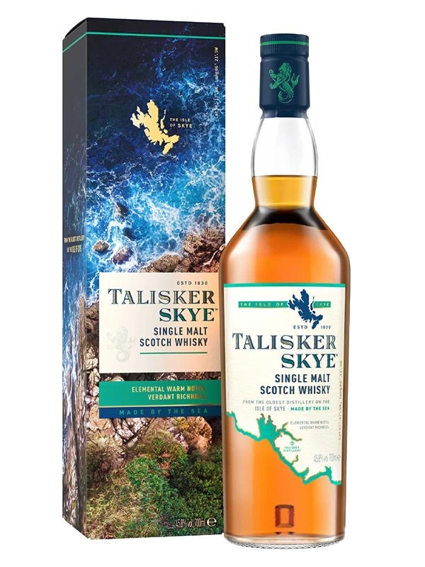 Produced at the oldest distillery on the Isle of Skye, Talisker Single Malt Scotch Whisky has been made by the sea since 1830, with its smell and taste instantly connecting you to its rugged maritime home. An easy-drinking Talisker, taking the distillery’s classically rugged character and softening it out by using refill and toasted American oak casks in the maturation process. Talisker Skye brings with it a well-rounded and sweet flavour profile packed with fresh citrus, sweet smoke, peppery spice and traditional Talisker maritime notes.