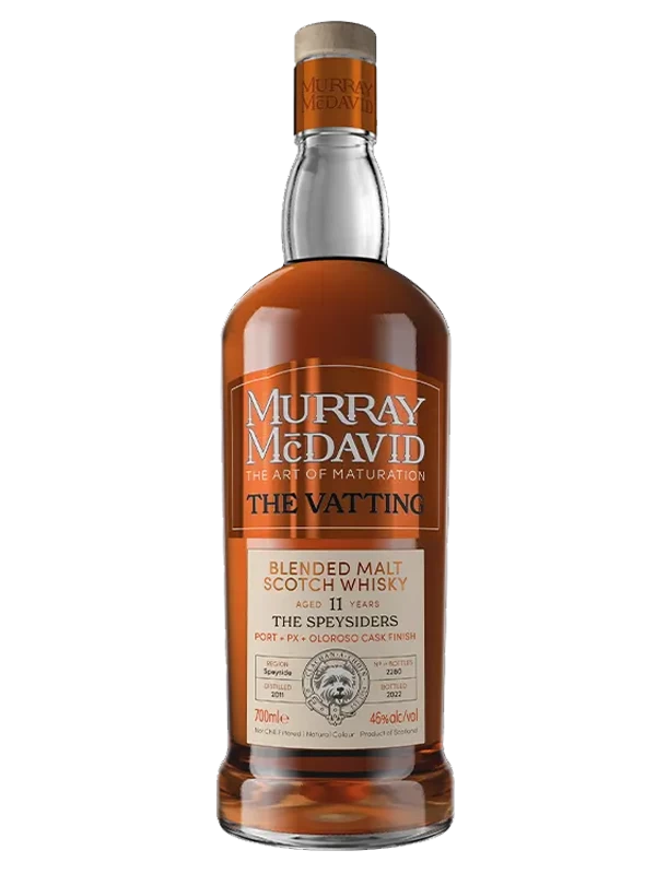 Murray McDavid is a Scotch whisky blender and bottler, well known for their distinctive bottlings of single malt and blended Scotch whiskies; these are often finished in unusual casks, such as wine barrels or rum casks, to impart unique flavors and aromas to the whisky. This blend of single malt scotch from Auchroisk, Glentauchers and Strathmill Distilleries – all the liquid that goes into this bottling was distilled and matured within ten miles of each other. This was then matured in a unique combination of Port, PX and Oloroso Sherry casks which imparts a exceptional flavour profile.
