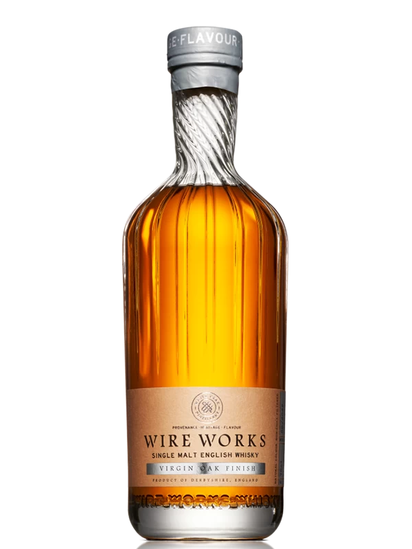 The Wire Works Virgin Oak encapsulates the essence of our signature style. Crafted from lightly peated malted barley and infused with live brewer’s yeast, this whisky benefits from extended fermentation, enriching it with profound fruity undertones. It begins its journey in top-quality, first-fill ex-bourbon barrels, acquiring a nuanced character, before undergoing a unique finishing process in new American oak barrels, carefully selected for their varying toast and char levels. This finishing at a milder ABV enhances the whisky’s depth, marrying the robust, oak-driven flavours with the inherent sweetness and spice. This process accentuates the vibrant fruit notes and the refined smokiness that are hallmarks of our core spirit, resulting in a whisky that’s both bold and elegantly balanced.
